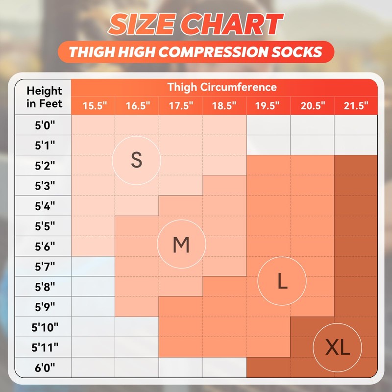 - Stylish Variety: Available in a variety of colors, these over the knee compression socks break away from boring nude shades to suit different occasions. The upgraded, longer design ensures a perfect fit and unparalleled support, no matter your height