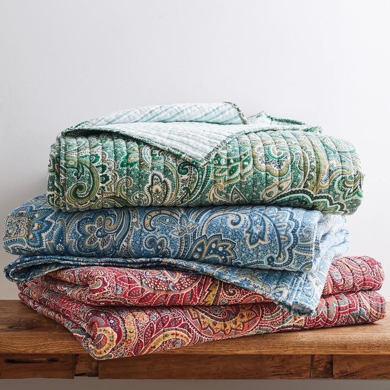 - THE KIMPTON GREEN DESIGN: One of our most popular quilts, Kimpton Green is inspired by traditional paisley patterns. The front features a rich, intricate paisley pattern in rich greens and teals and reverses to a traditional green stripe. A bound border provides contrast and texture to complete the look.
