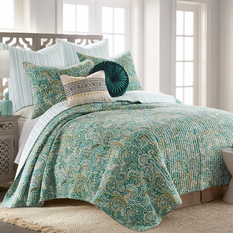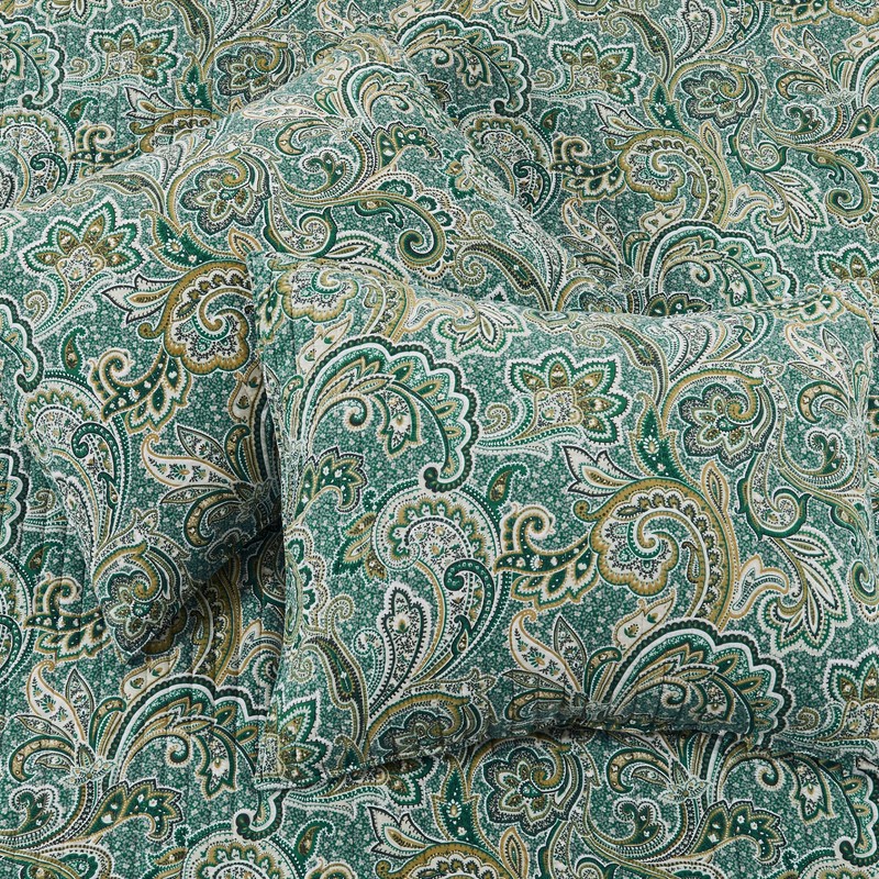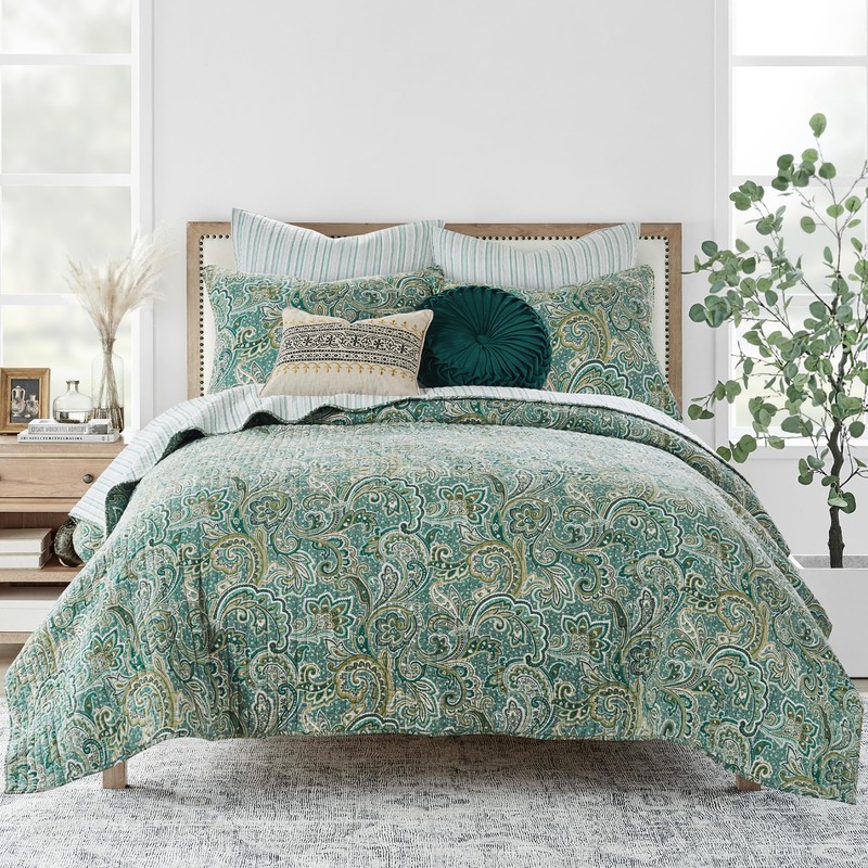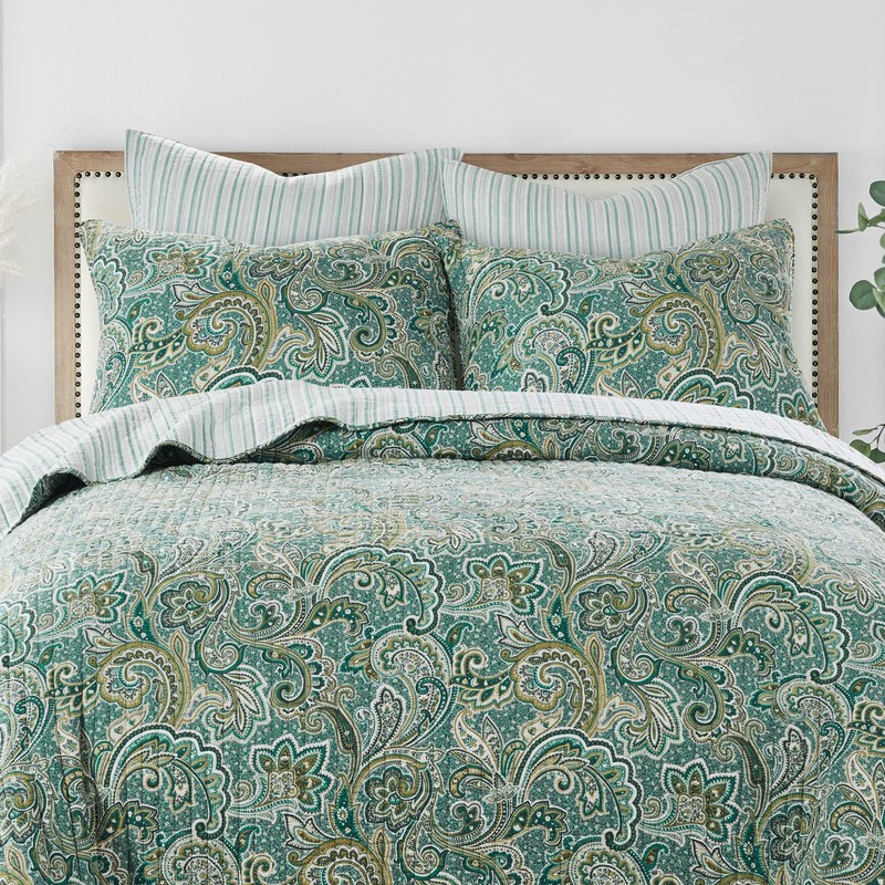 Levtex Home - Kimpton Green Quilt Set - King Quilt and Two King Shams - All Over Paisleys in Green,Teal - Quilt (106x92in.) and Shams (20x36in.) - Reversible - Cotton/Cotton