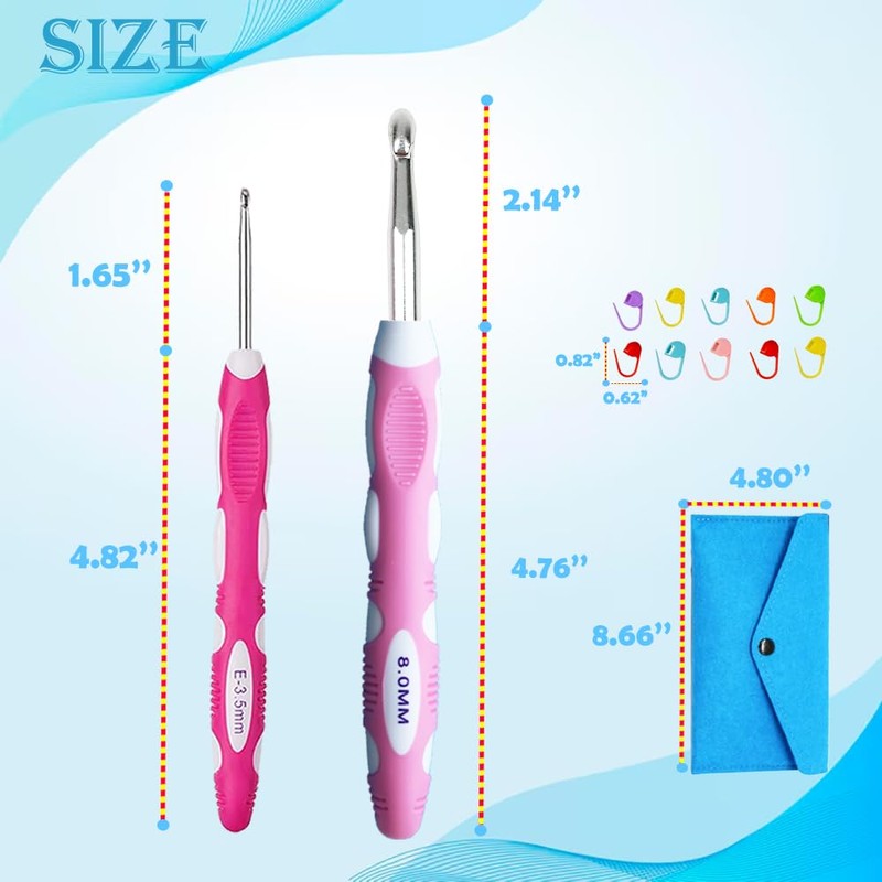 - What You Get: The complete crochet set includes 13 crochet needles ranging from 2.0mm to 10.0mm, 10 stitch markers with different colors, and a blue felt bag for easy storage and transport.