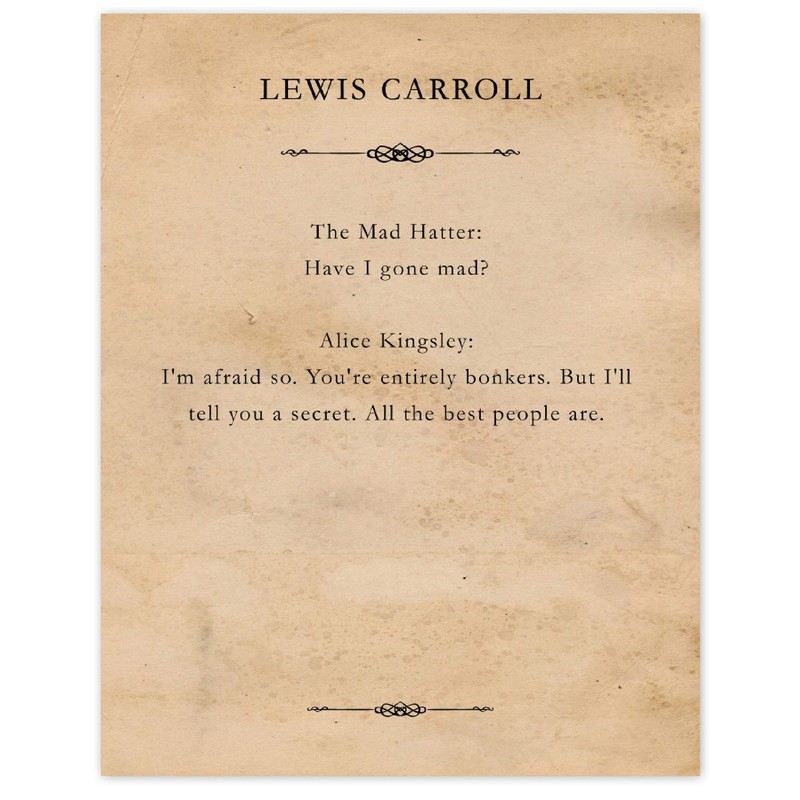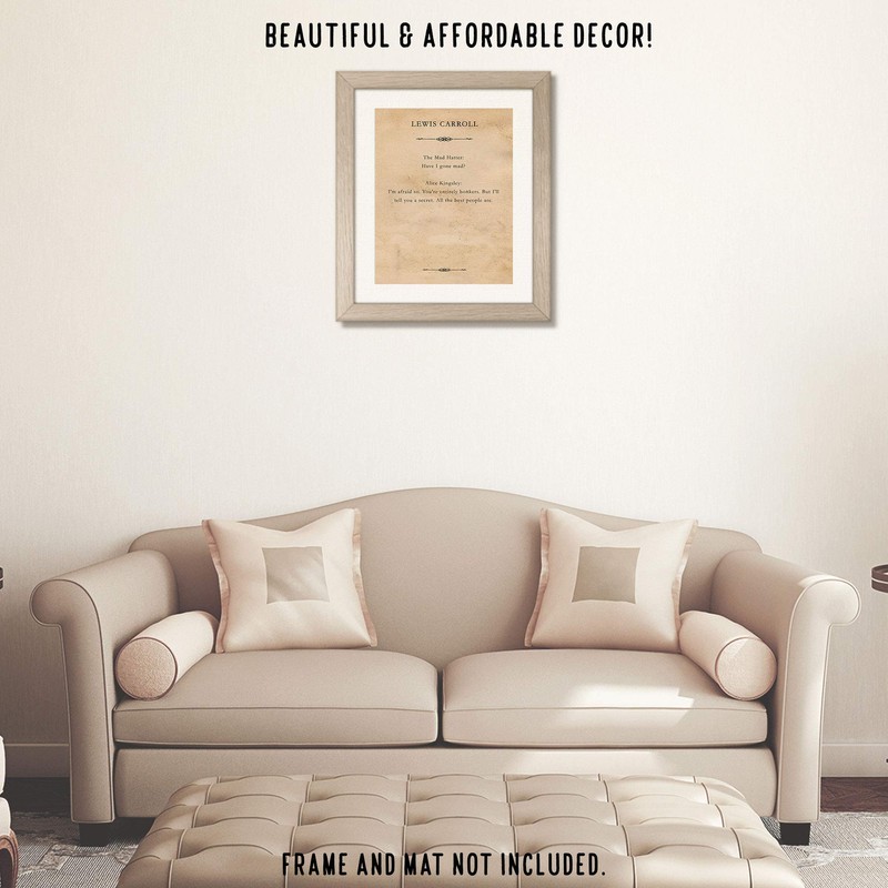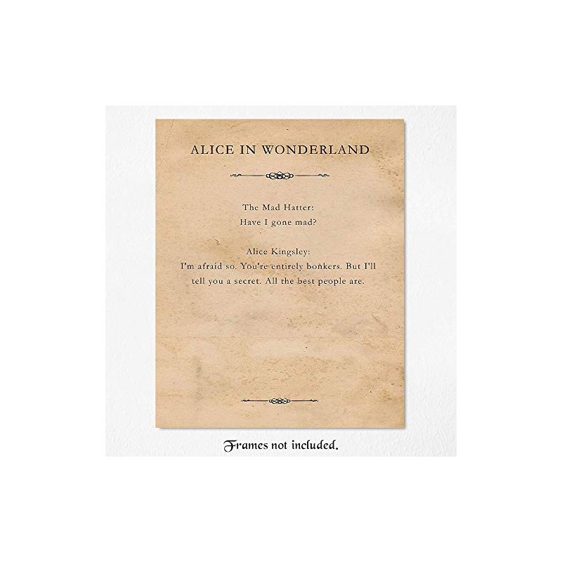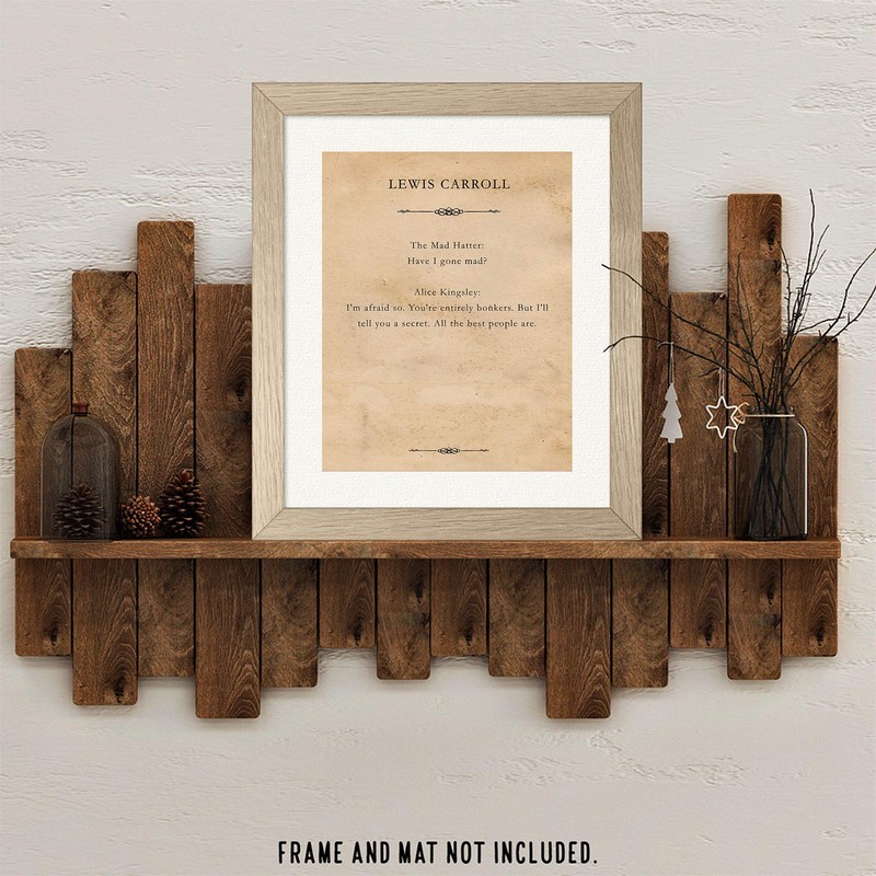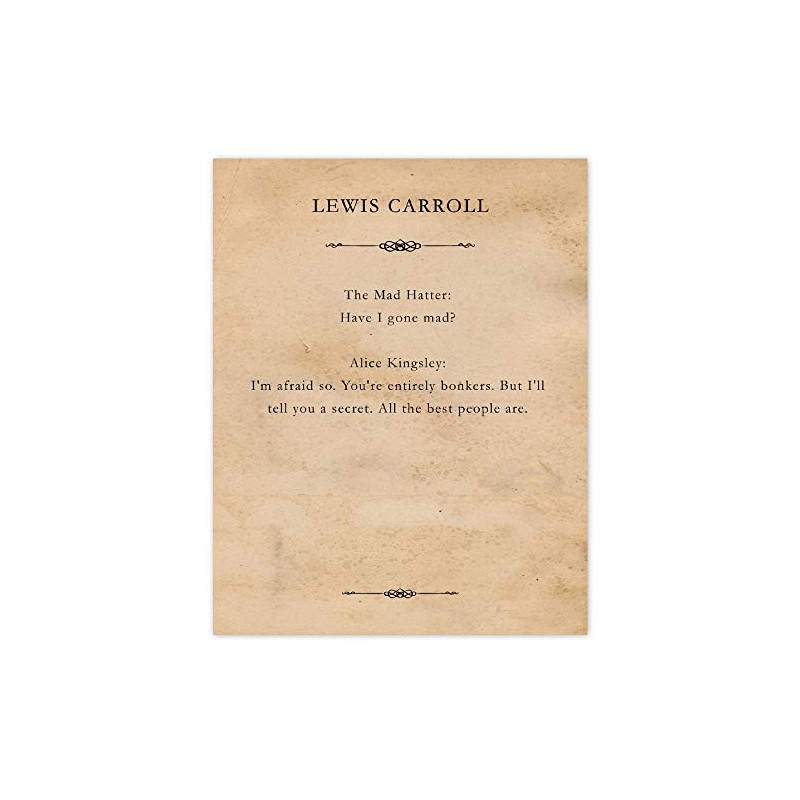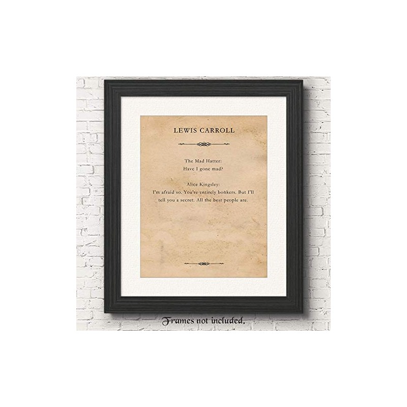 Lewis Carroll Alice in Wonderland Mad Hatter Quote Print, 1 (11x14) Unframed Typography Book Page Photos, Wall Art Decor Gifts Under 15 for Home Office Man Cave School Student Teacher Literary Fan
