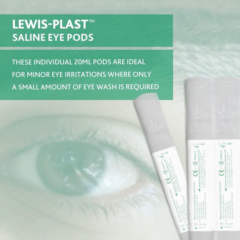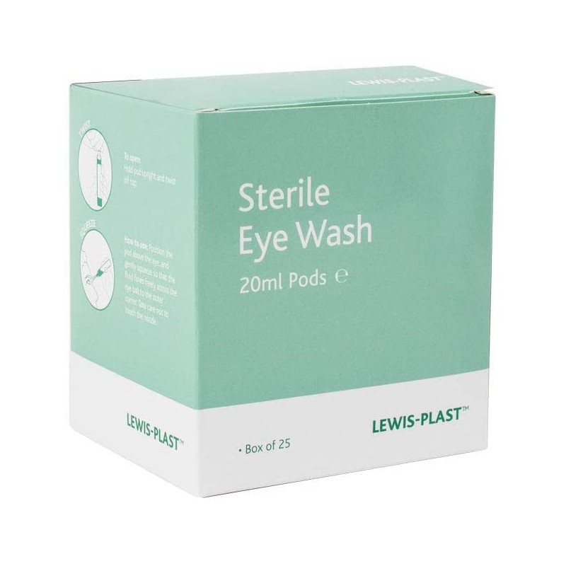 Lewis-Plast Premium 20ml Saline Eye Wash Pods Box of 25 - Contains Sodium Chloride 0.9% W/V Sterile Non-Toxic 20ml Pods for Minor Eye Irritation