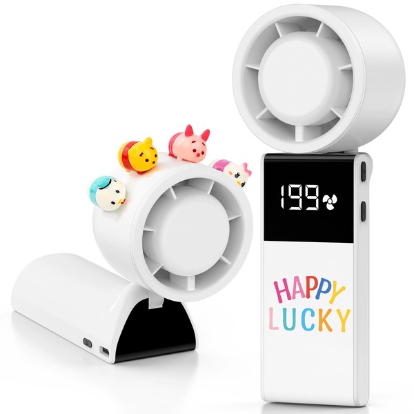 LEWOTE Portable Handheld Turbo Fan, 9 Gear Wind Rechargeable with LED Display Hand/Desk Foldable Fans,with 2 Sheets Alphabet Sticker and 4 Cartoon Doll Used For DIY (White)