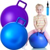 Lewtemi 2 Pcs 18 Inch Big Bouncing Ball with Handle Jumping Hopper Bouncy Ball for Adults Exercise and Air Pump for Outdoor Sports Game(Blue, Purple)