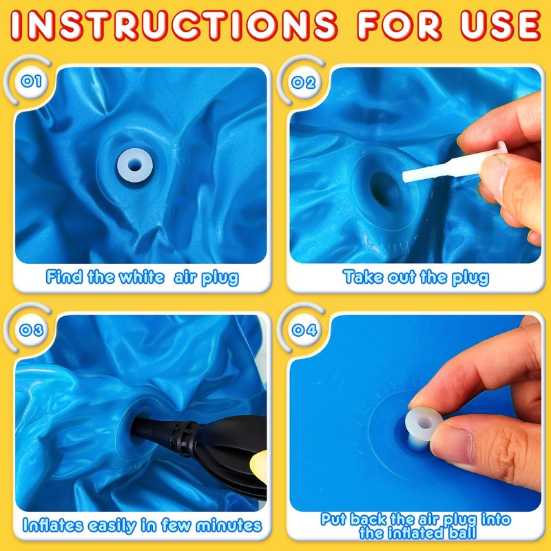 - Inflation Instructions: take out the air plug of the exercise ball, insert the tip of the inflation pump to the air hole of the ball, push the inflation pump by hand to inflate the ball to the appropriate size, and then quickly install the air plug back into the hole