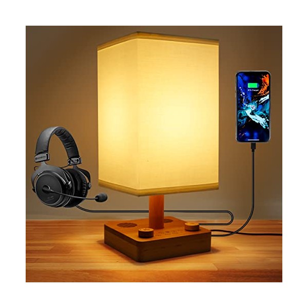 Lexenic Solid Wood LED Bedside Lamp with Sound Machine,Nightstand Lamp with 38 Sounds White Noise Machine,Dimmable 450LM 2700K Warm White Night Light,Dual 5W Speakers Hi-Fi Bass (Lamp with Speaker)