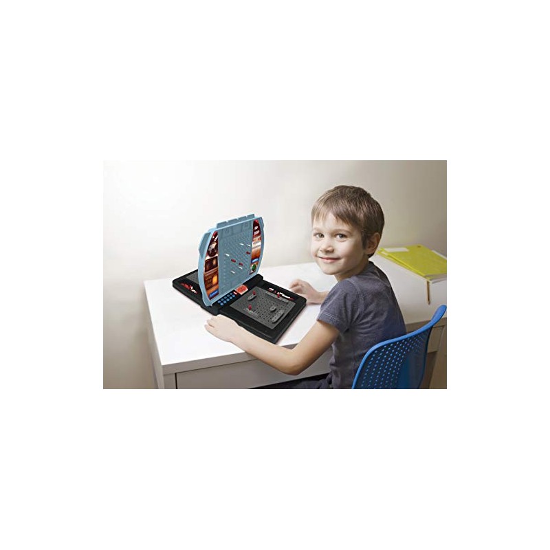 "A talking electronic naval battle with ultra -realistic sound and light effects! 1 to 2 players: play against the computer or challenge a friend! Gameplay : to be the first to sink your opponents 5 ships. 2 game modes: normal mode or difficult mode in which the computer does not specify which ship is hit. 4 languages: French, English, Spanish and Portuguese. Realistic combat sounds reflecting the situation of the game (set up, fire, missed / hit / sunken target) to intensely live the battle! Flashing light when a boat is hit or sunk. Automatic shutdown. Storage space under the ocean grids. Box content: 2 ocean grids, 2 target grids, 10 ships, 80 red pawns, 200 white pawns, and an instruction manual with the rules of the game. Power Supply: 3 x AA/LR6 batteries of 1.5V (included). Designed and developed in Europe - Made in China, Shenzhen."
