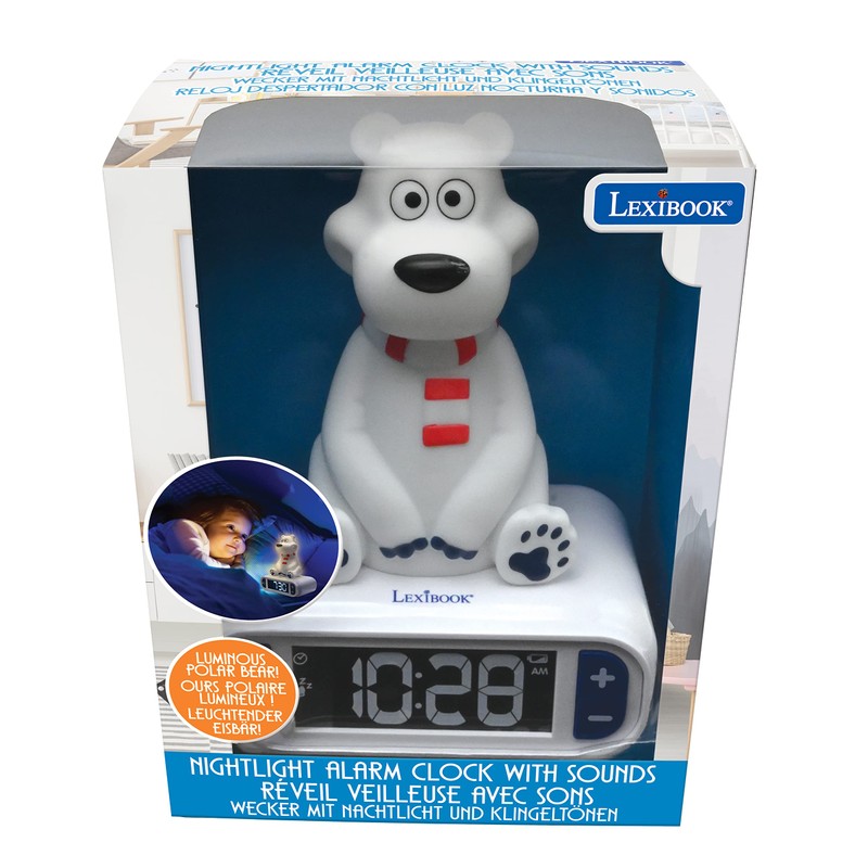 LEXIBOOK RL800PB Polar Bear Alarm Clock with Figure that Lights Up, Choice of 6 Alarms, 6 Sound Effects, Clock, Alarm Clock for Boys and Girls, Snooze Function, White