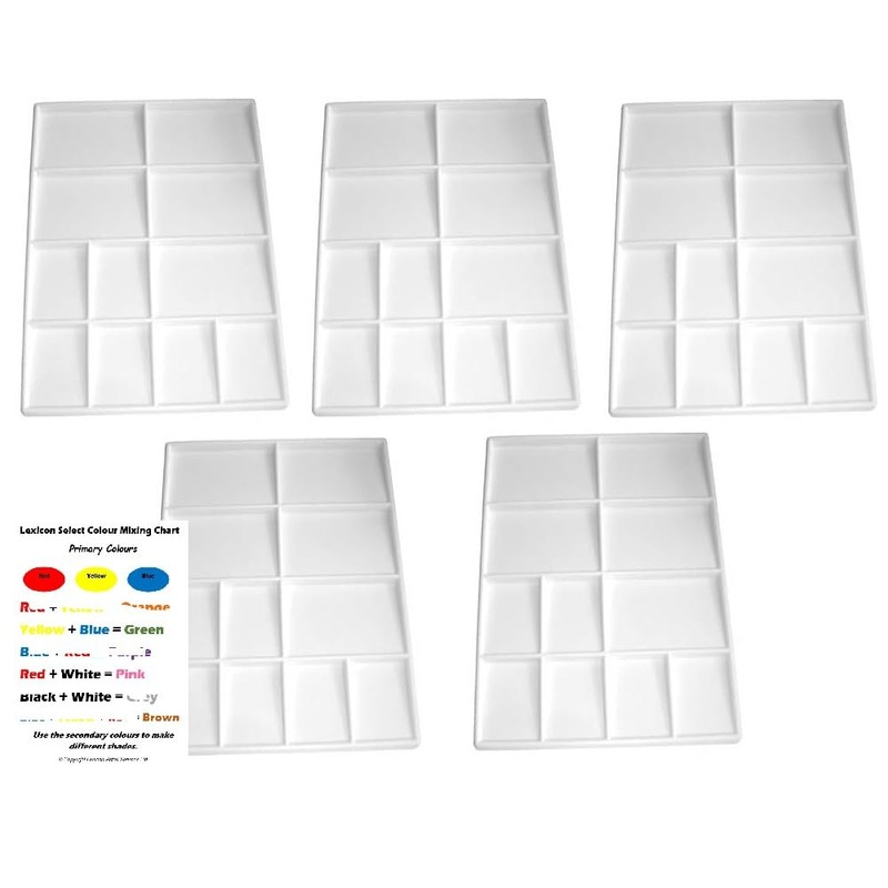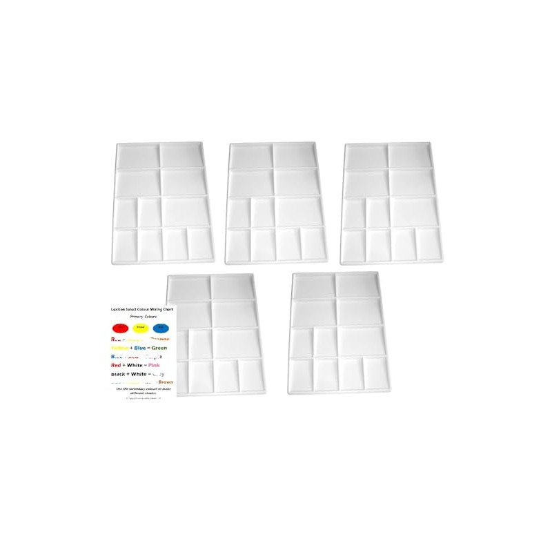 Lexicon Select Artists Rectagular 11 Well Flat Paint Mixing Palettes - Pack of 5 with Colour Mixing Chart