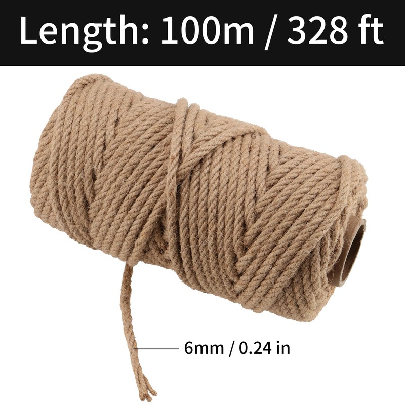 - VALUE PACK - There are 2 pack of 6mm natural jute rope, each measures 6mm/1/4 inch in diameter and 100m/328 feet in length, total 200m, it is more than enough to meet your usage needs.