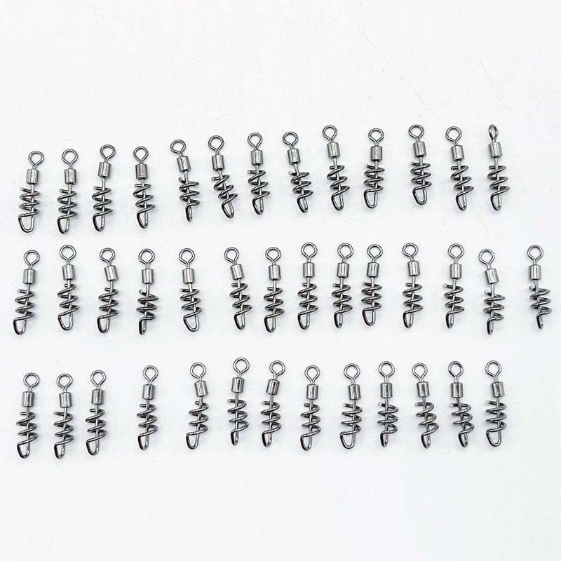 LEXOR Cork Screw, Sarkan, Lock, Rolling, Direct Connection, Swivel, Swivel, Snap, Stainless Steel, For Fishing, 10#, Set of 40