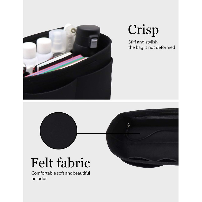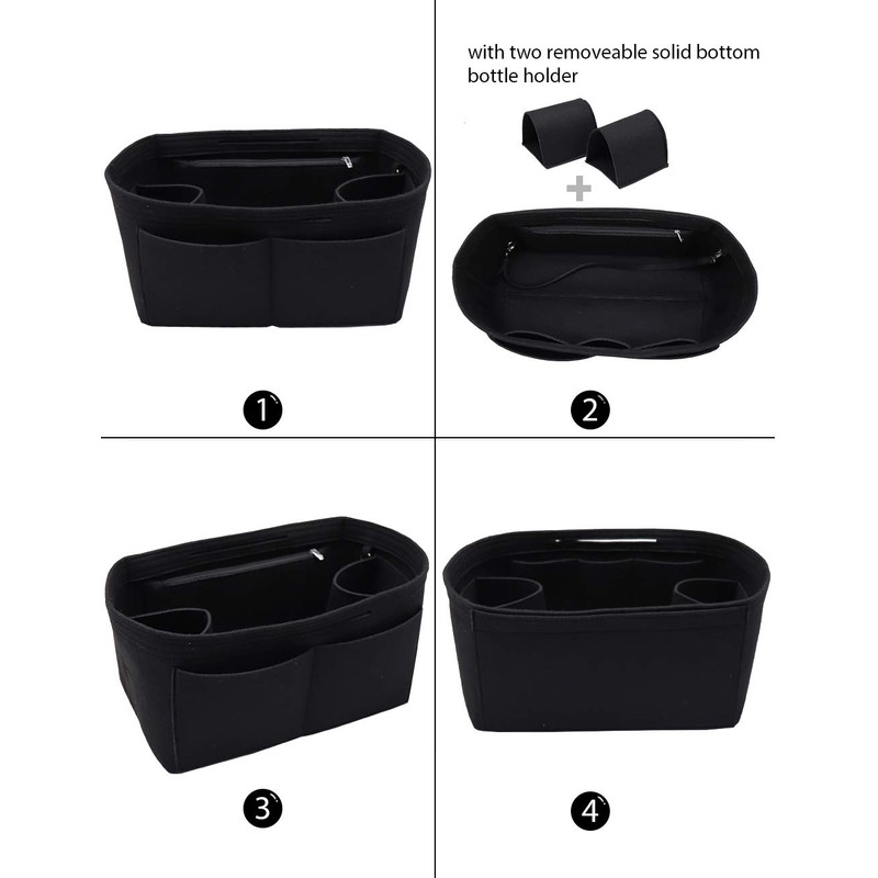 LEXSION Felt Purse Organizer Insert Bag In Bag with Two Removeable Holder 8020 Black M