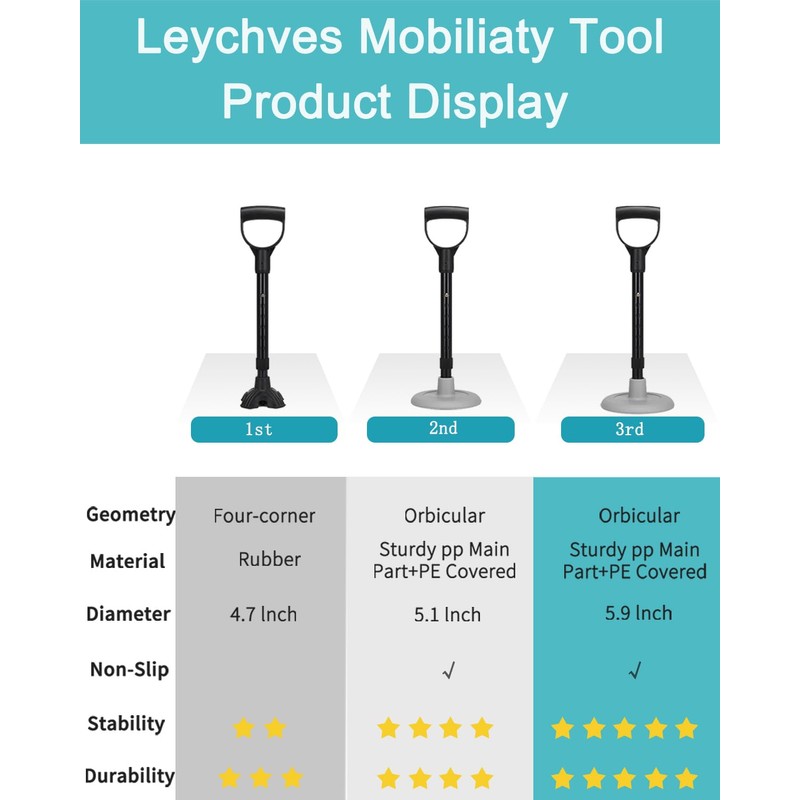 - 3rd Base: Standing aid base's diameter is 6-inch, non-slip rubber base provides greater stability, helping you stand up from the floor without wobbling.