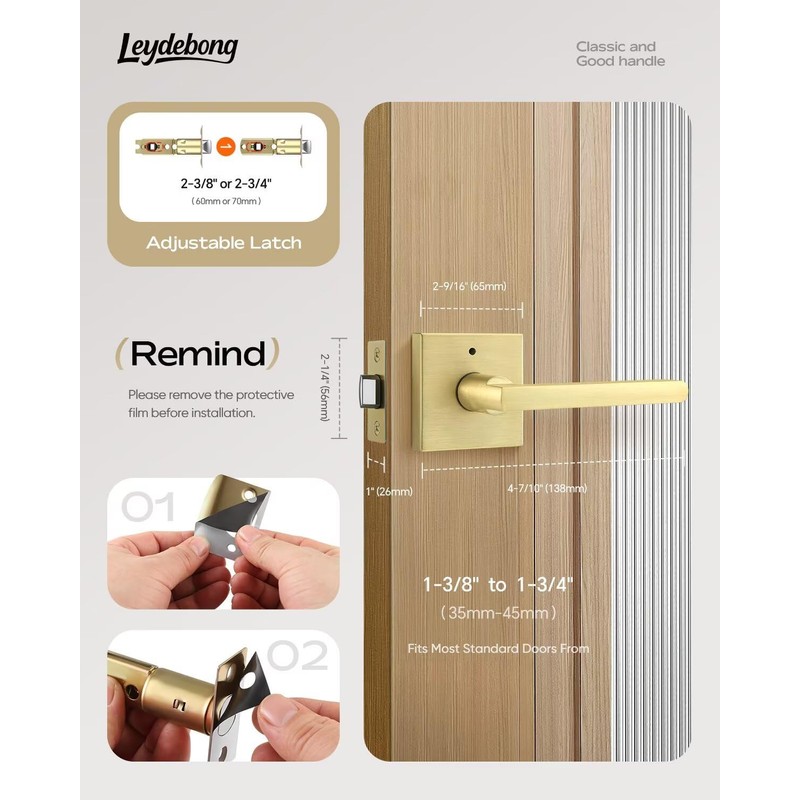 - [Easy Installation] Straightforward and can be accomplished with basic tools. The lever fits most standard door 1 3/8"(35mm) to 1 3/4"(45mm), and the included hardware makes installation a snap. Adjustable Latch fits 2 3/8 inch or 2 3/4 inch door(60mm or 70mm).