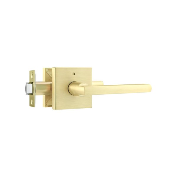 Leydebong 1 Pack Gold Door Handles, Keyless Privacy Door Levers Bed and Bath Leverset Lockset, Universal Handing with Square Door Knobs, Satin Brass Finish