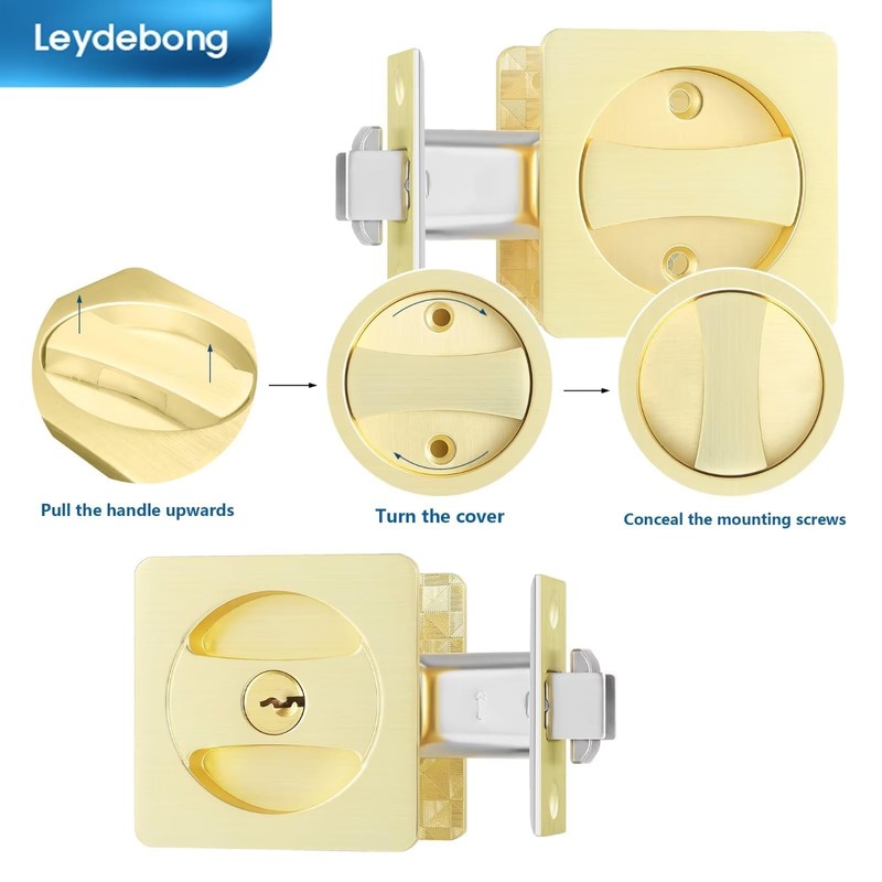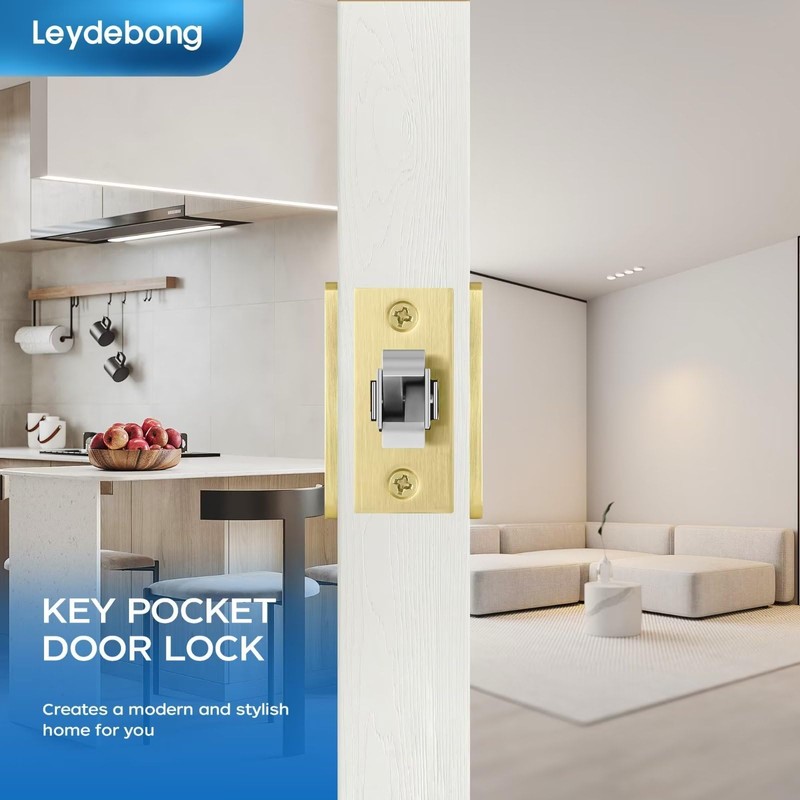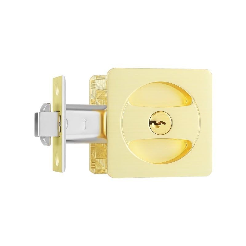 - Entry Pocket Door Lock(Keyed Alike): It can be unlocked with a key or locked with a key. The unique sheet recessed design can cover the door hole perfectly while fitting tightly to the door. High quality gold pocket door privacy hardware ensures residential security. 1 key opens all the door locks in the package.