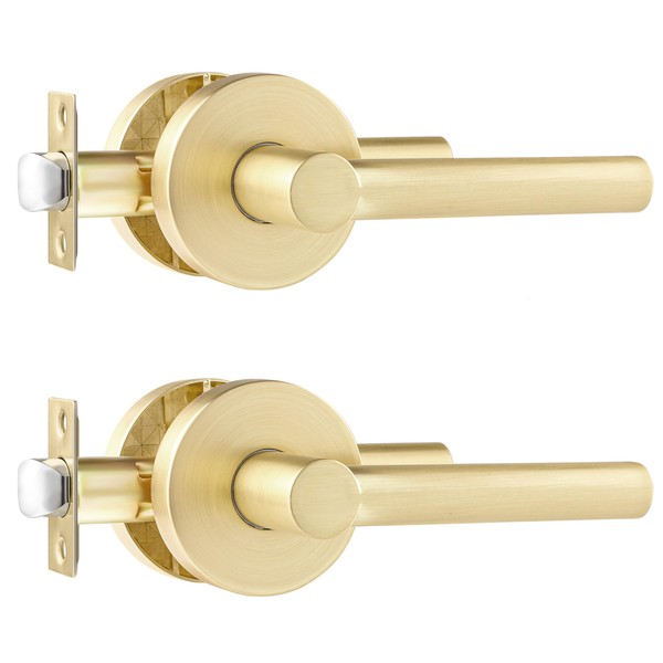 Leydebong 2 Pack Gold Interior Door Handle Passage Door Handle Lever for Indoor use, Reversible for Left and Right with No Key