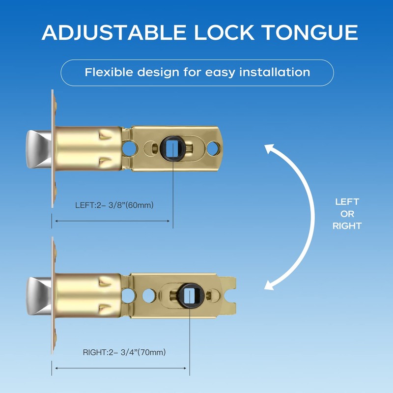 - Standard Size Fits Most Doors: With an adjustable backset of 2-3/8 inch or 2-3/4 inch (60mm or 70mm), this door knob fits door thicknesses of 1-3/8 inch to 1-3/4 inch (35mm to 45mm). It is fully reversible for right or left handle installation, making it versatile for any door.