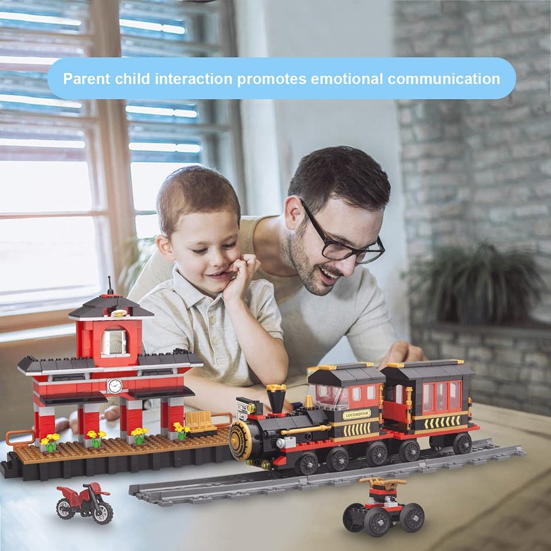 LEYI Classic Train Set with Station Building Blocks Toys 583 Pieces