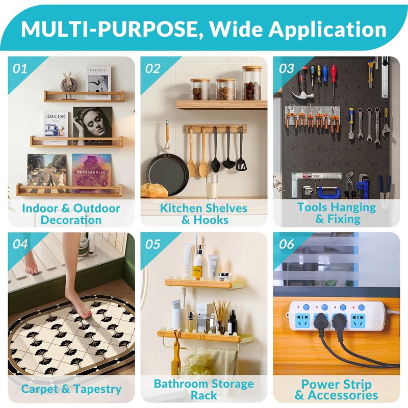 - Removable and No Residue - Our removable double sided tape leaves no sticky residue and works great on walls of glass, metal, plastic, ceramic tile, marble, wood etc. No need to clean the mess like other kind of adhesive. It can be removed when every you want and easy to operate. It can replace many traditional ways to achieve the purpose of paste, greatly improve the convenience of operation, much easier to remove, no residue or mark left. Always help bring great convenience to your life.