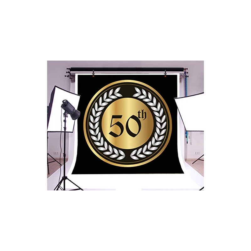Leyiyi 6x6ft Happy 50th Birthday Photography Background Wedding 50 Years Anniversary Party Luxry Metal Memoral Event Backdrop Business Meeting Company Celebrating Photo Portrait Vinyl Studio Prop
