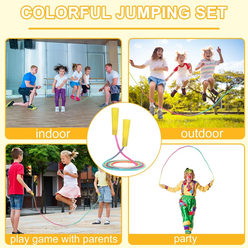 - Safe and Reliable Material: made of quality nylon material, these vibrant jumping ropes are lightweight and reliable, flexible and elastic, not easy to fray; The handle is made of quality plastic, comfortable for you to hold and not easy to break, bringing joy and a smile to your child in the backyard or park