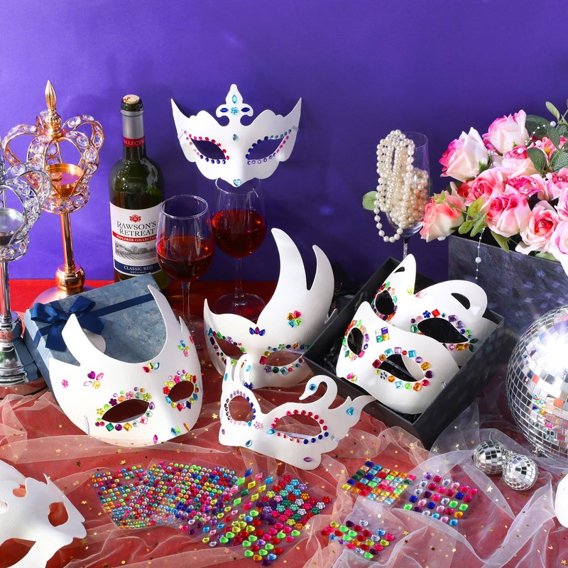 - Sufficient for DIY: the package contains 48 pieces of paper masks Multiple styles, each with 8 pieces, and 40 sheets of gem stickers in multi color and assorted sizes, 1154 pieces of jewels in total, they are enough for art classes, craft time, costume accessories, making your own masks and so on