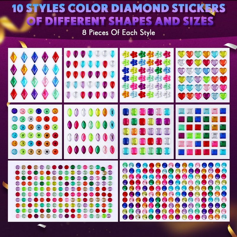 - Self Adhesive Jewel Stickers: these bling self adhesive gems are made of quality acrylic, shiny and sparkly, with self adhesive, they easy to paste to your crafts and projects, leaving no marks when peeled off; They are in multi colors: red, pink, yellow, green, blue, purple, orange, etc. and have multi shapes like round, square, water drop, rectangle and more, which can be pasted on the cups, vases, laptops, blank masks, phones and more