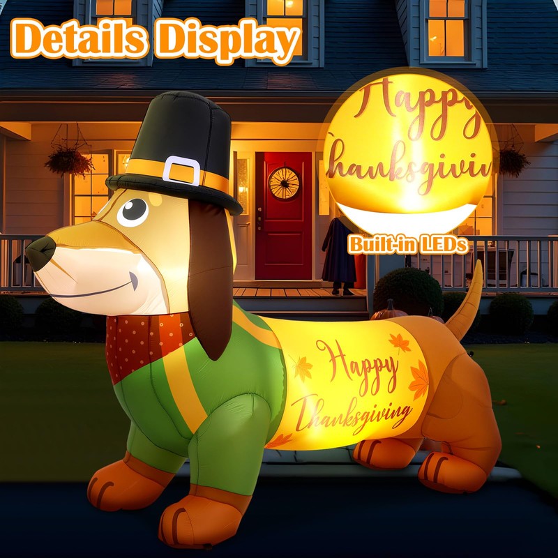 - Thanksgiving Dachshund Inflatable: you will receive a complete dachshund inflatable Set, including a Thanksgiving dachshund inflatable with a built-in fan, an appropriate amount of windproof ropes and ground nails. The complete accessories are convenient for you to use and decorate your holiday