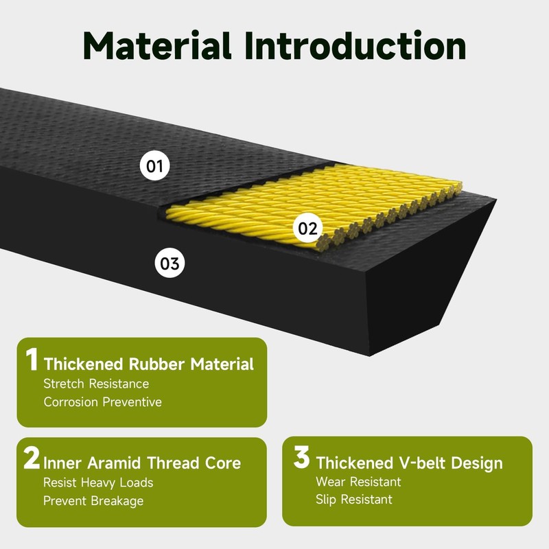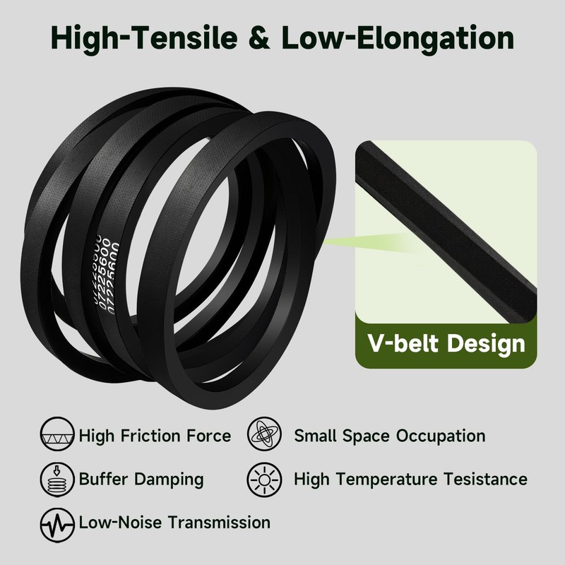 - 【V-Belt Design】: The Black V-belt design achieves efficient transmission through high friction, featuring a compact structure with small space occupation, while also providing vibration damping for smooth operation and high-temperature resistance