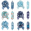 LeZakaa 12PCS Christmas Pull Bows with Ribbon - Blue Style with Santa Claus and Snowman Pattern - Perfect for Gift Wrapping, Florist, Bouquet, Basket