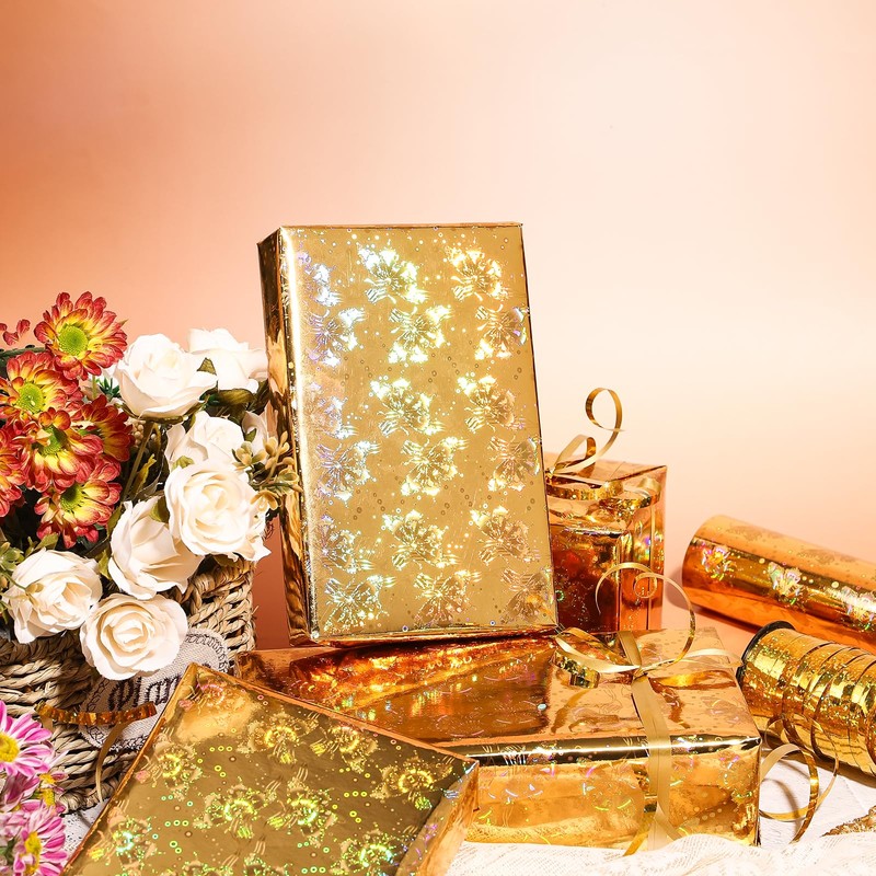 - PREMIUM QUALITY: The gold wrapping paper created with high-quality paper materials, thick and not easily tear or rip. Item is protected by shrink film to prevent wrapping paper from scratches and dirty.