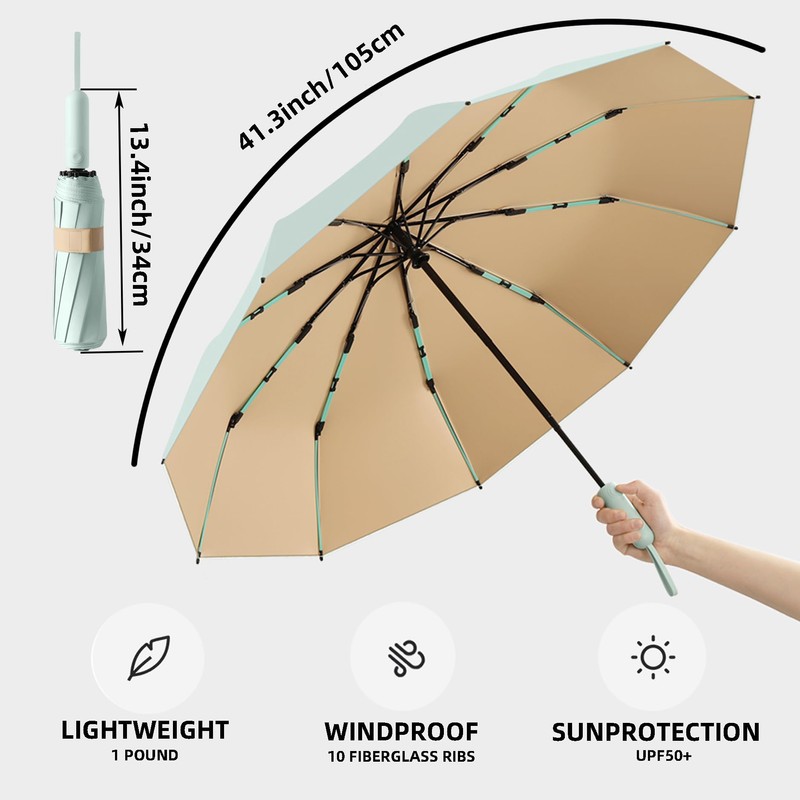 leznazik Folding Umbrella Anti-UV Compact Durable Folding Umbrella Auto Open Close Windproof Travel Umbrella Premium Grip Fits Backpack (Mint Green)