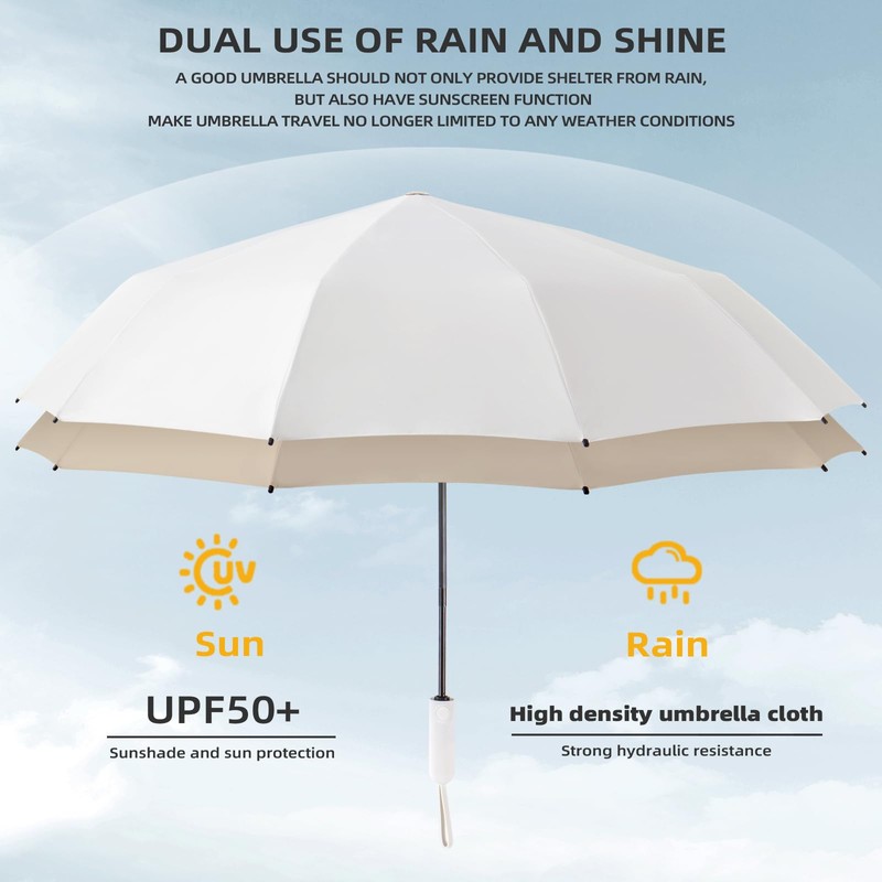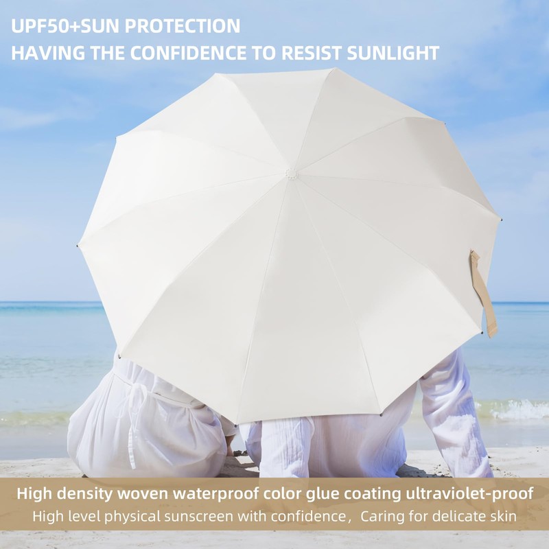 leznazik Folding Umbrella Anti-UV Compact Durable Folding Umbrella Auto Open Close Windproof Travel Umbrella Premium Grip Fits Backpack (Moonlight White)