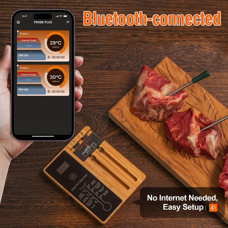 - [Smart Connectivity and Control] Easily manage your cooking with our intuitive app for remote monitoring. Customize settings, set timers, and receive alerts, all while benefiting from USDA-approved presets for perfectly cooked meat.