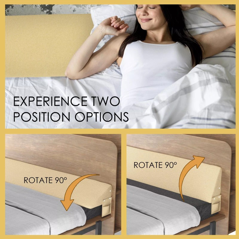 - [PERFECT BED WEDGE GAP FILLER] : Imagine never having to fish out your lost pillow or phone from behind the bed again. Our headboard wedge pillow is designed to effortlessly close gaps from 0 to 8 inches between your mattress and headboard, ensuring your essentials stay right where you want them. Simplify your life and sleep better, knowing your bed headboard pillow wedge will be there in the morning.