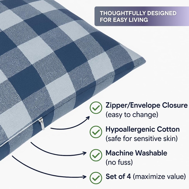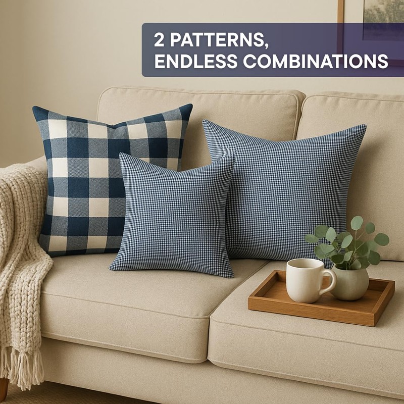 LFH Home Buffalo Farmhouse Gingham Outdoor Pillow Covers Soft Cotton Rich Decorative Throw Pillow Covers with Zipper Fade Resistant Reusable Machine Washable 20x20 Set of 4 - Blue