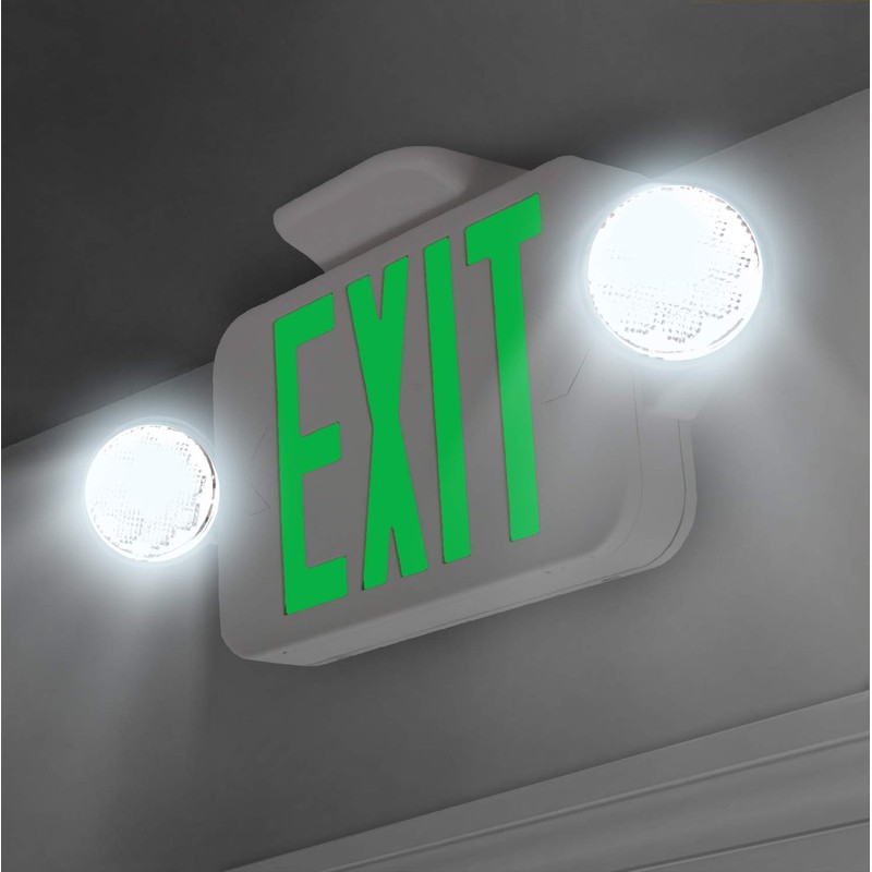 LFI Lights - UL Certified - Hardwired Green Compact Combo Exit Sign Emergency Light - High Output- COMBOGJR2