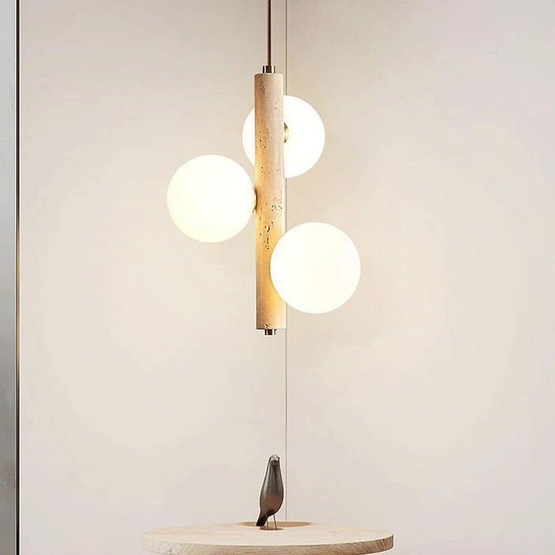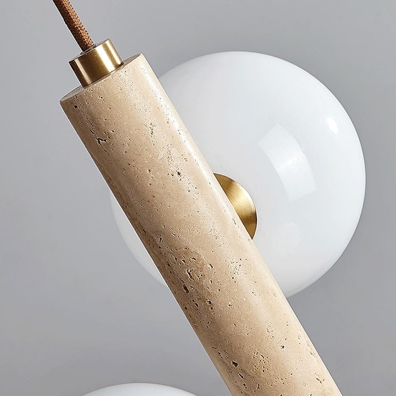 LFKPTAO Modern Natural Yellow Cave Stone Pendant with Glass Shade Linear Chandelier, Modern Minimalist 2/3 Light, Suitable for Dining Room, Balcony, Corridor Lighting Stone Lamps