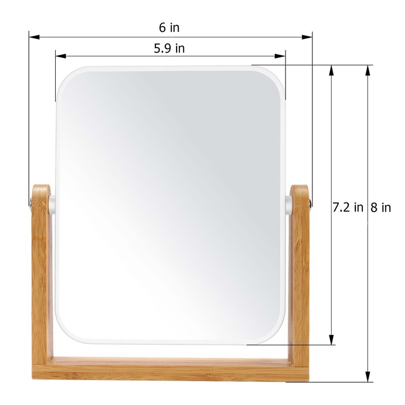 - DOUBLE SIDED MAGNIFYING MIRROR - Double-sided Makeup Mirror design (a side 1:1,other side 1:3). 8 inches mirror to see a larger area of the face. Product Dimensions: 1.8" x 7.1" x 8" high; Mirror glass sizes: 7.2"L x 5.9"W