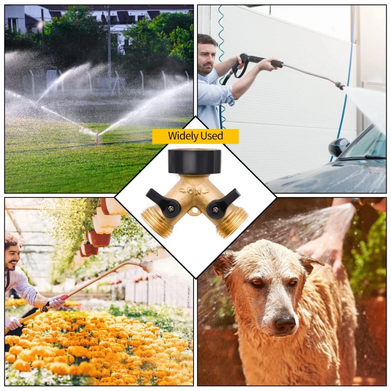 【Widely Used】All hose bib diverters can be opened and closed individually, using one or more valves depending on your needs, You can freely switch water flow for watering plants, vegetable, flowerbeds, lawns, flushing the floor and washing your car, or showering your pets.