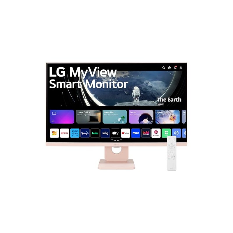 LG 27SR50F-P MyView Smart Monitor 27-Inch FHD (1920x1080) IPS Display, webOS 23, HDR 10, 5Wx2 Speakers, AirPlay 2, Screen Share, Bluetooth, ThinQ App, Remote Control, Pink