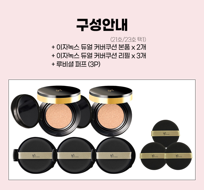 엘지생활건강 x이자녹스 듀얼커버쿠션 패키지 (본품2+리필3+퍼프3종)
