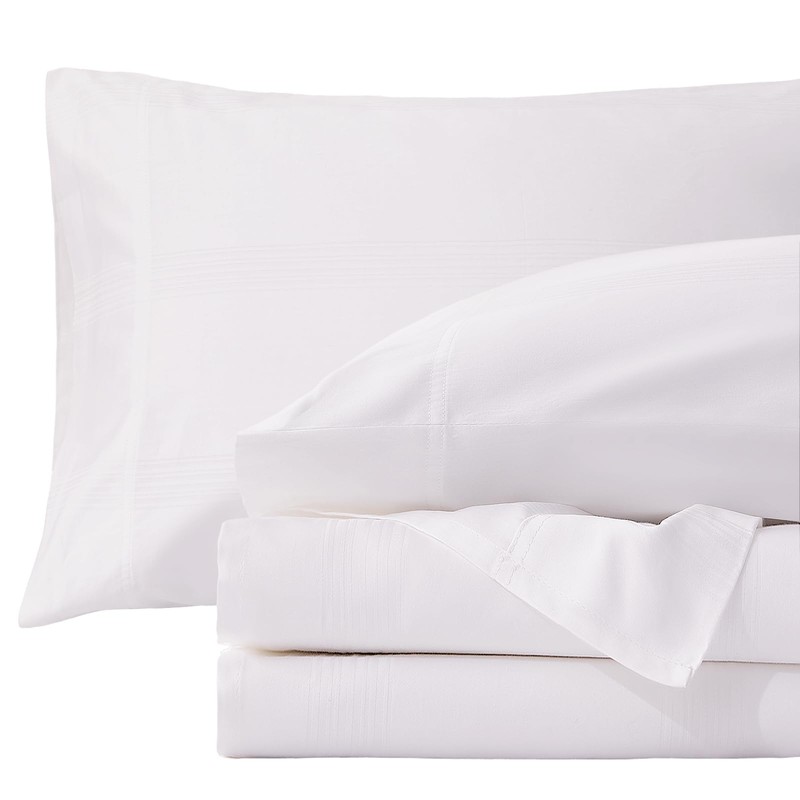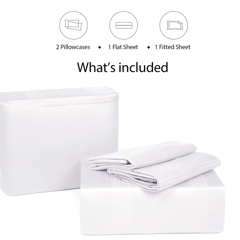 LGCLUMINA Pure Cotton Sheets - 4 Piece Queen Sheet Set, Lightweight & Breathable Queen Size Bed Set, Luxury Sateen Stripe Dobby Bedding with Elasticized 16" Deep Pocket Fitted Sheet