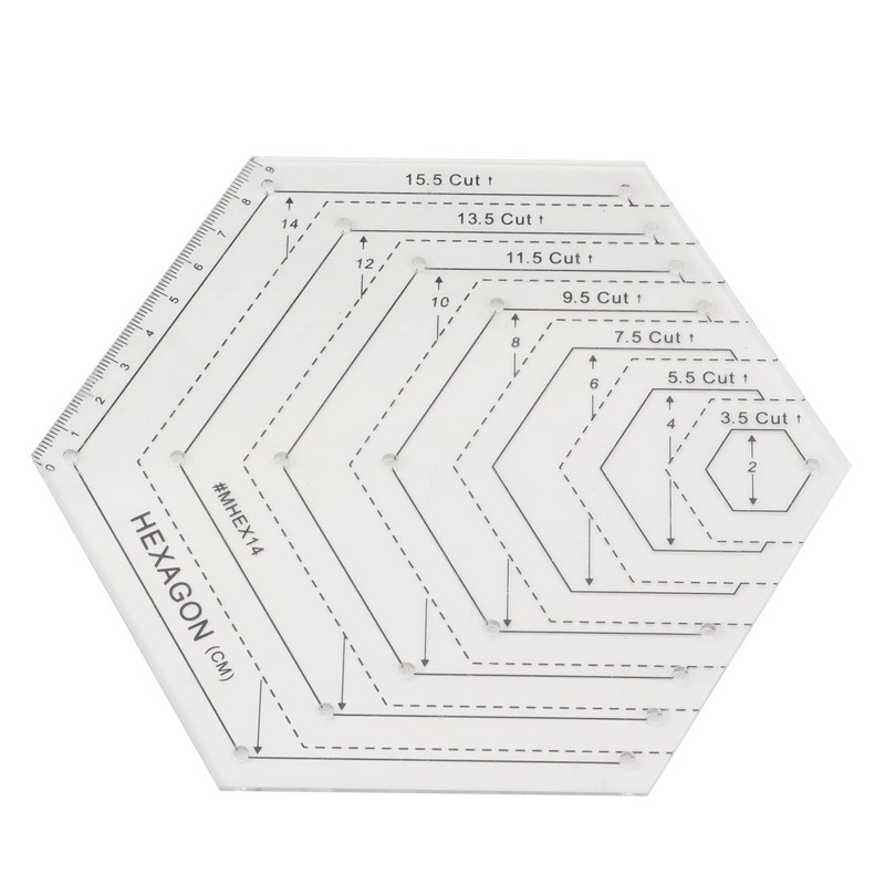 - 4 x Quilting Rulers in Package Thickness: approx. 2mm, Shape: Hexagon, 45 Degree Diamond, 60 Degree Diamond, 60 Degree Triangle.