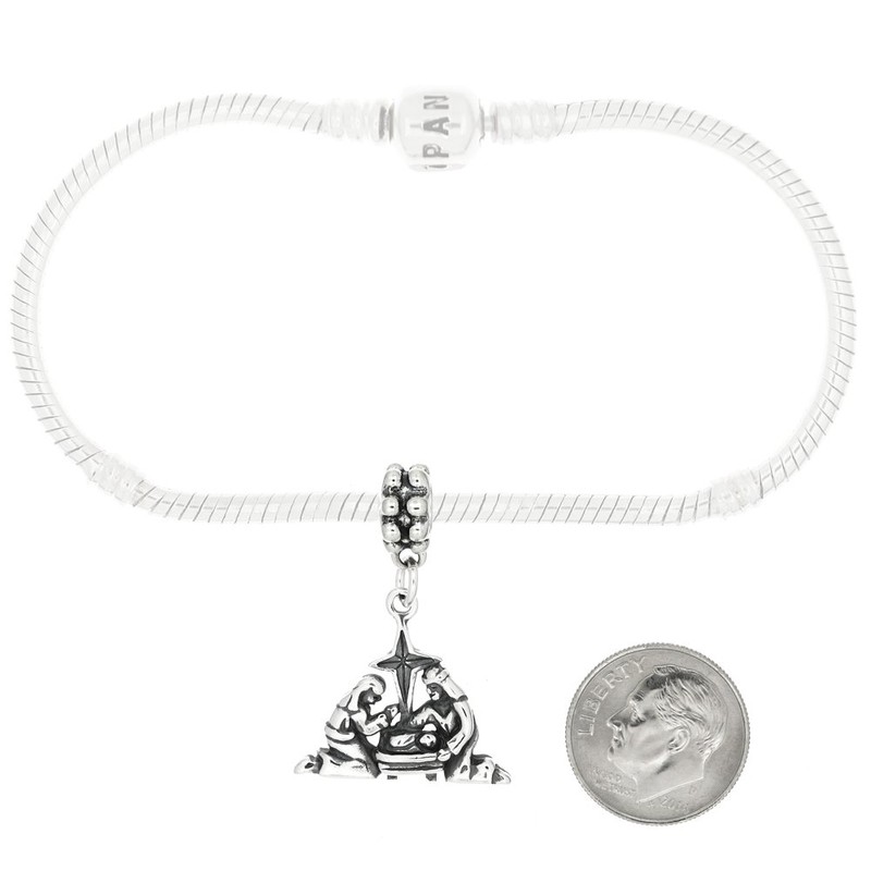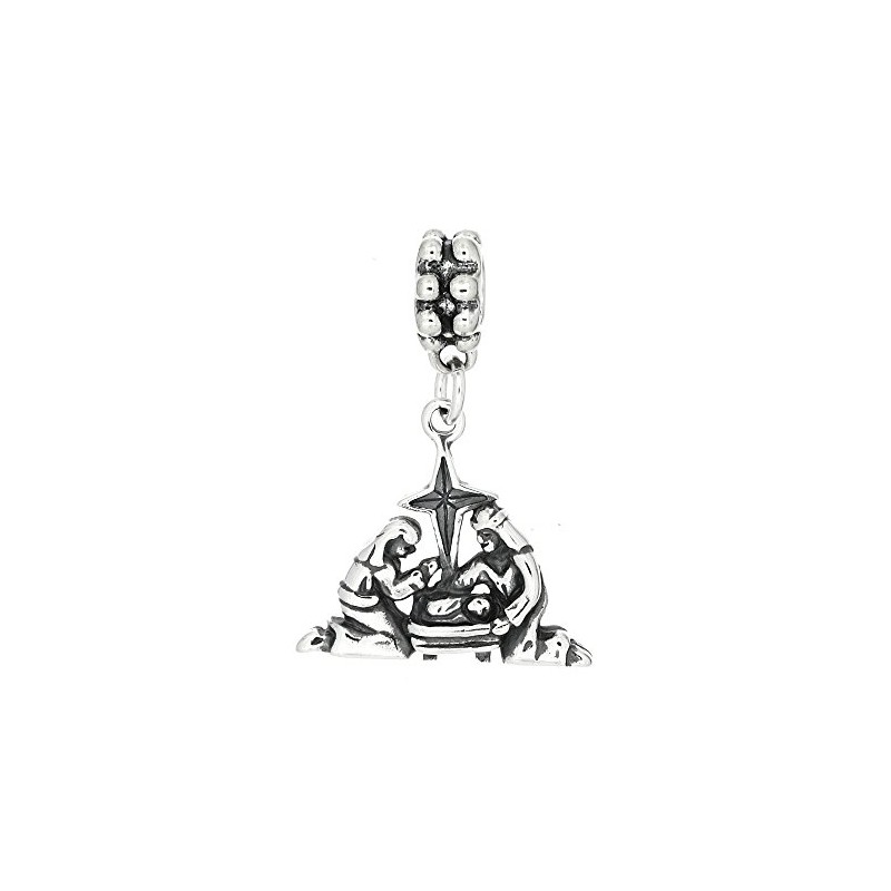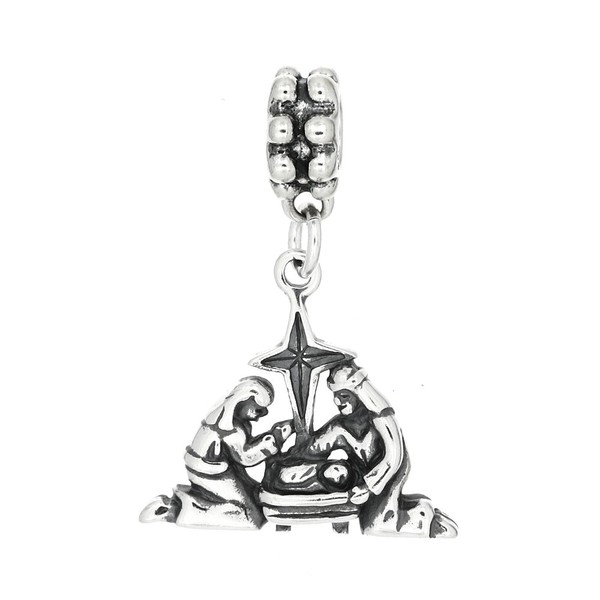 LGU Sterling Silver Oxidized Detailed Nativity Manger Scene Dangle Bead Charm