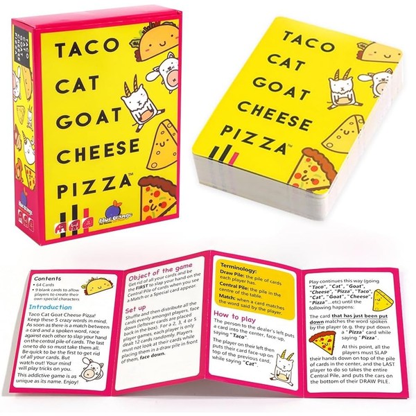 - ✨In this competitive party game, you only have to remember the 5 terms and their order Taco Cat Goat Cheese Pizza. You can tell these terms while you place your cards in the middle.