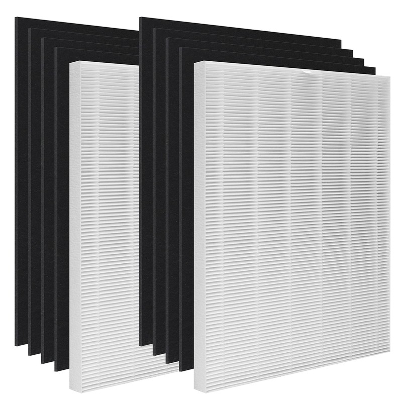 -8pcs Activated Carbon Filters: Traps larger particles in the air like dust, hairs, pet fur, lint, prolongs the life of the True HEPA filter, and absorbs household odors from pets, cooking, smoking and harmful VOC’s
