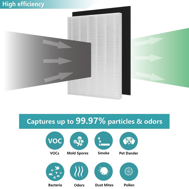 -2pcs Premium H13 Grade True HEPA Filter: Captures 99.97% of airborne particles down to 0.3 microns in size, creating fresh and purified air for you and your family