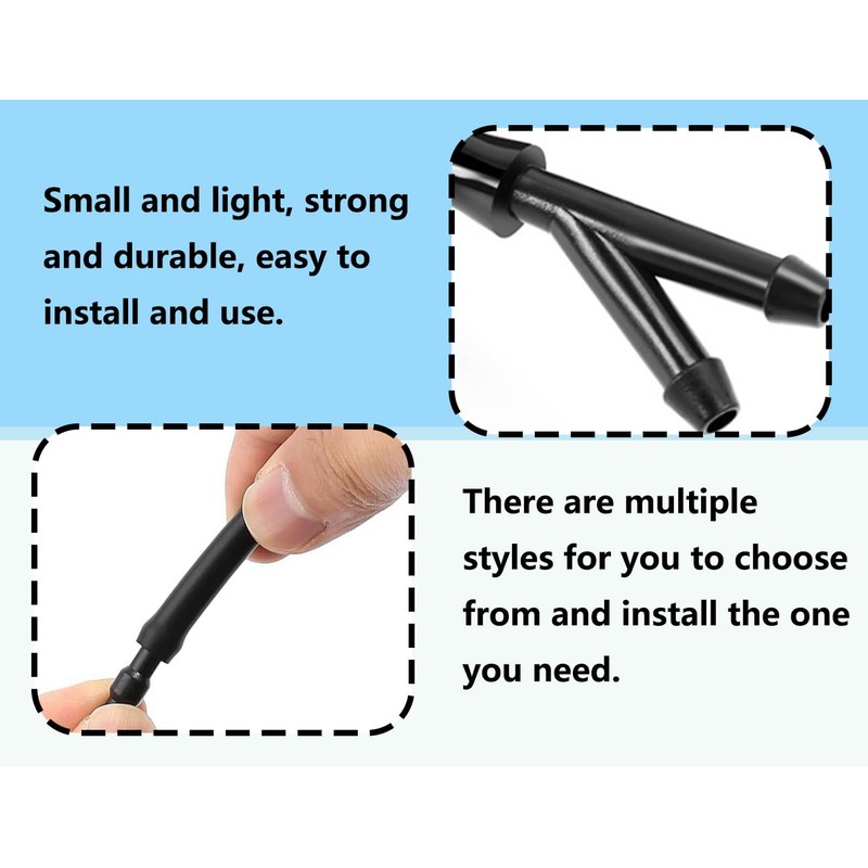 - [SET CONTENT]:The kit includes 10 black T hose connectors, 10 black I hose connectors, 10 black Y hose connectors and a black hose